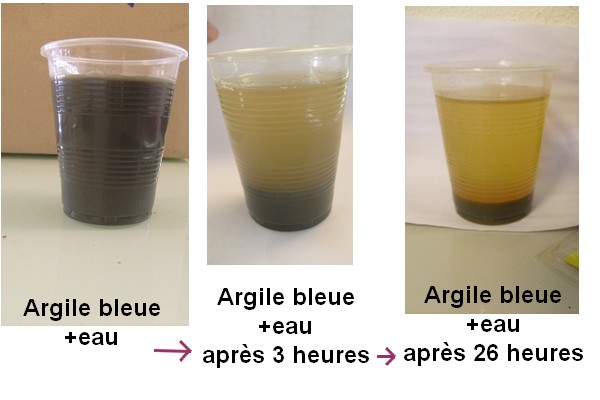 Si l’eau est calme, alors les particules d’argiles vont très lentement tomber au fond :